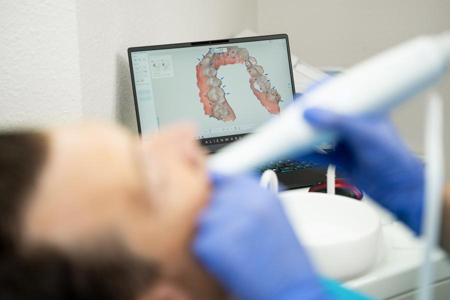 Mit dem Intraoralscanner ersetzen wir 90% unserer Abdrücke. Mit der Kamera wird der Kiefer gefilmt und so die kompletten Modelldaten gespeichert. Dies ist für den Patienten äusserst angenehm und zudem erleben wir eine sehr viel höhere Präzision als bei der herkömmlichen Methode.